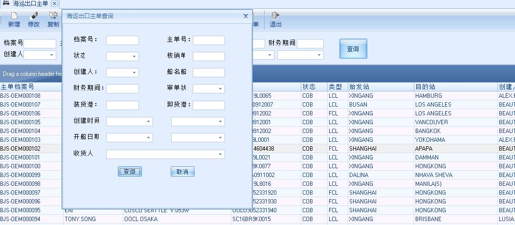 • 海运进出口业务 部分界面截图(点击小图查看大图)