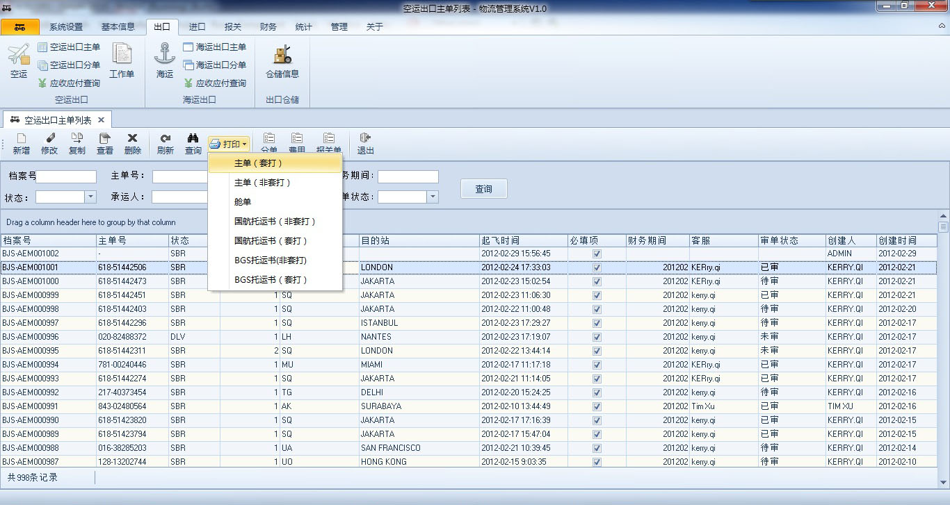 系统可直接打印空运主单、舱单、托书、账单。支持直单、一主多分,自动生成销售提成。