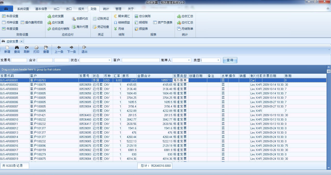 收入成本、运单审核、各部门利润、销售提成、发票管理、收款付款、凭证报表、对账单、账龄分析