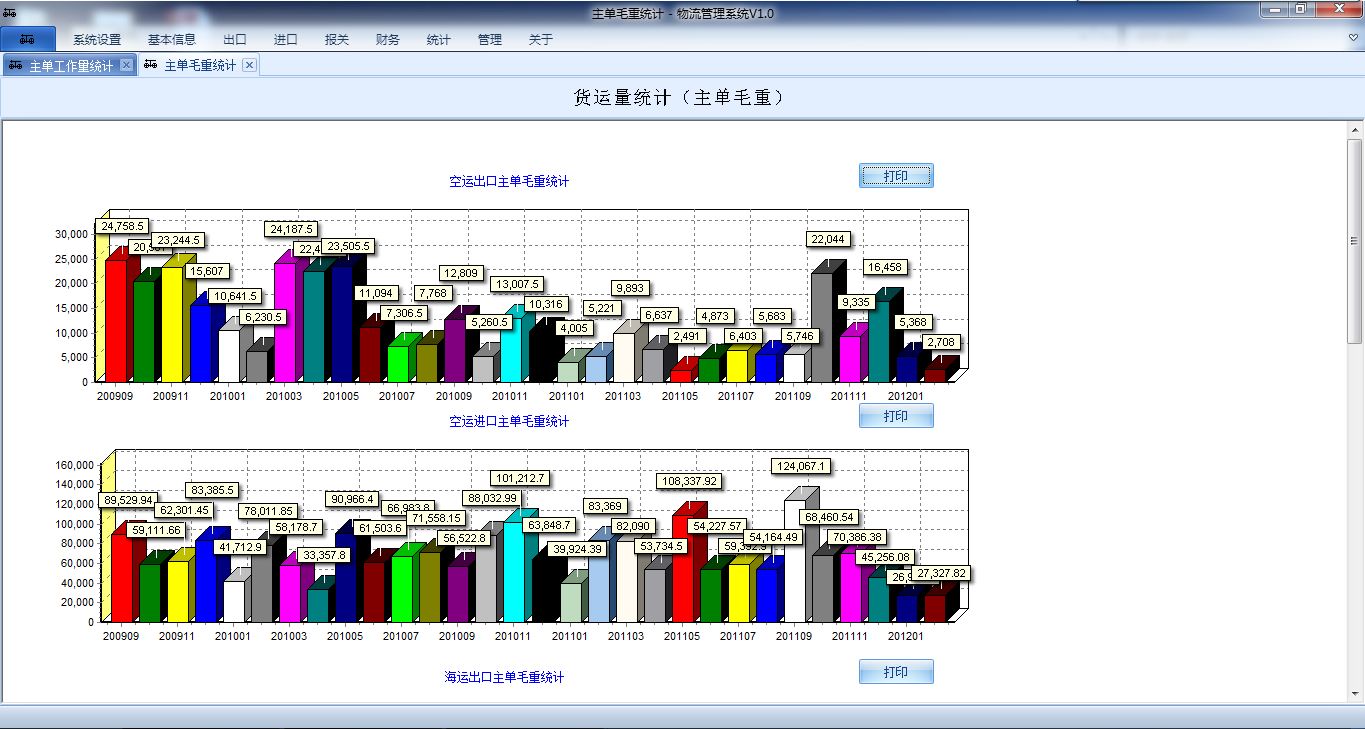 提供适合国际物流行业的各种统计分析图表,例如货量统计、工作量统计、税金分析、客户利润统计、销售利润统计。